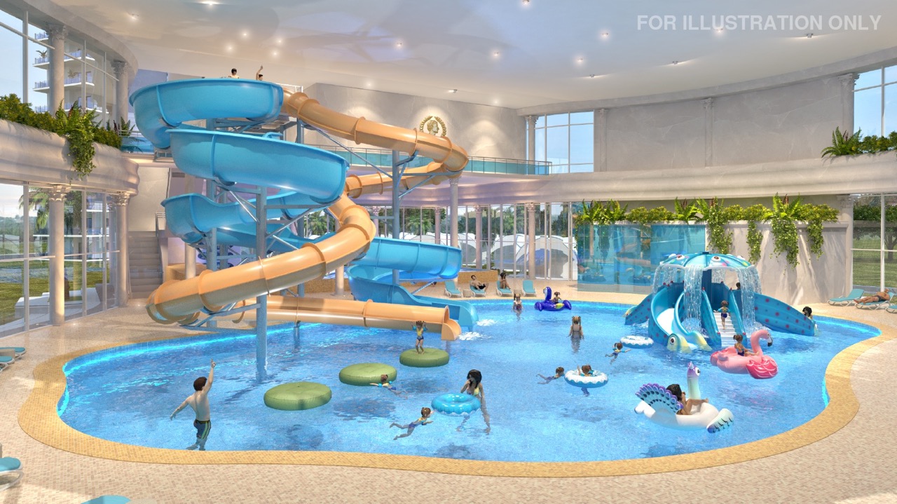 Комплекс находится всего в 600 метрах от песчаного пляжа Лонг бич, что делает его идеальным местом для любителей морских купаний. Но на самой территории комплекса также есть множество развлечений и удобств, включая подогреваемый крытый бассейн, мини-аквапарк, семейный бассейн, полуолимпийский бассейн, детский бассейн, бассейн Памуккале, лаунж бассейн, тропический бассейн и даже бассейны с соленой водой. Крытый аквапарк и бассейн для серфинга добавляют впечатлениям изюминку.