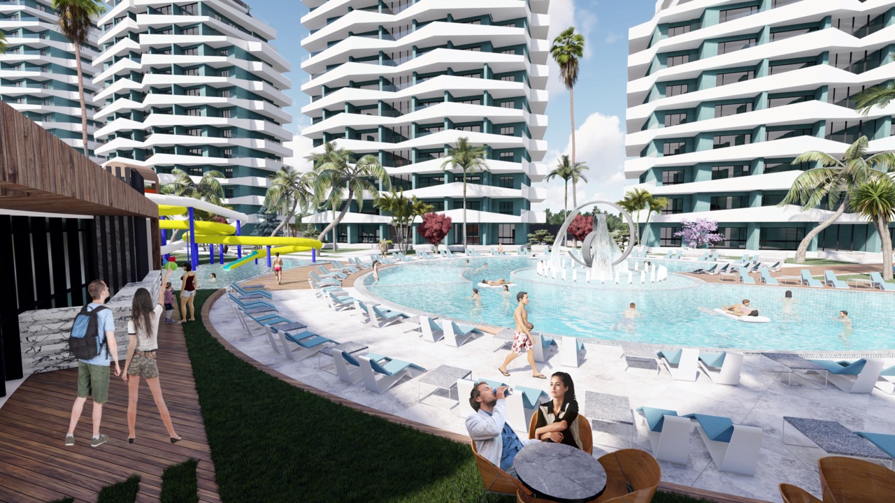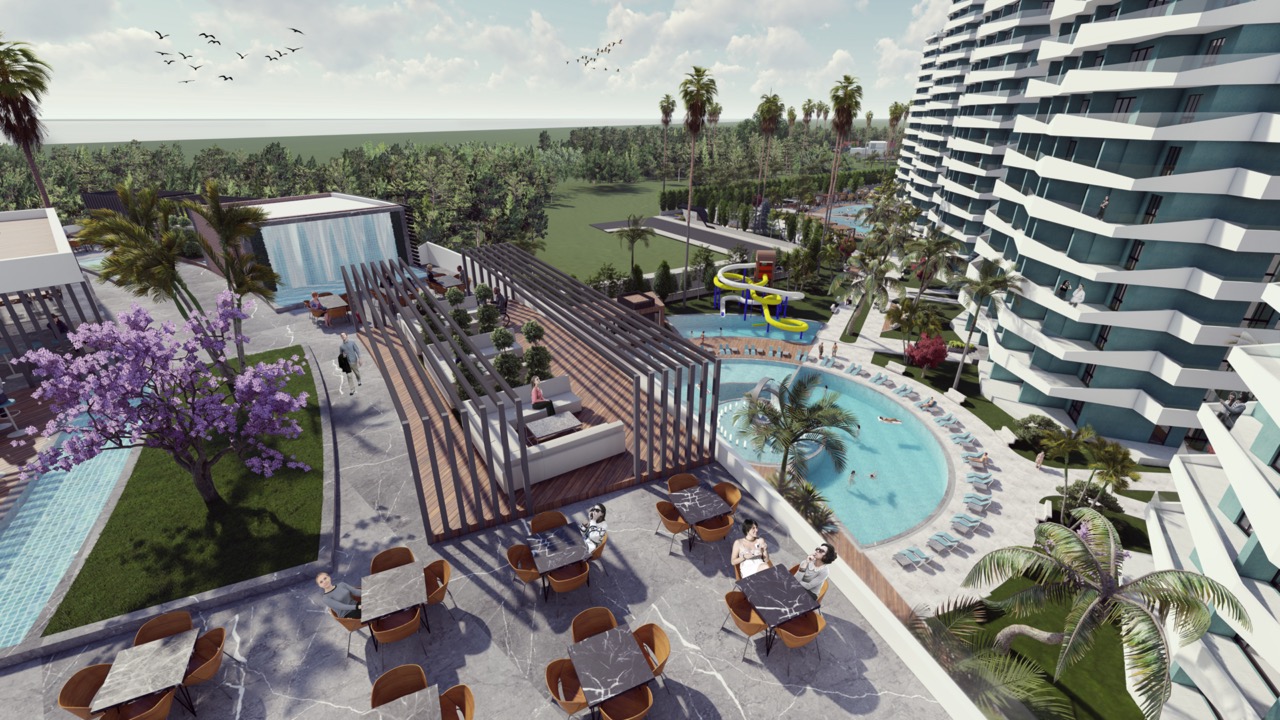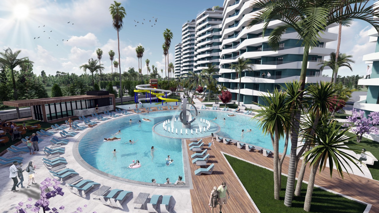 Особой гордостью является бассейн с аквапарком, который обеспечивает массу веселья и адреналина для посетителей всех возрастов. Этот жилой комплекс на Северном Кипре предоставляет разнообразие развлечений, делая ваше пребывание незабываемым и комфортным.