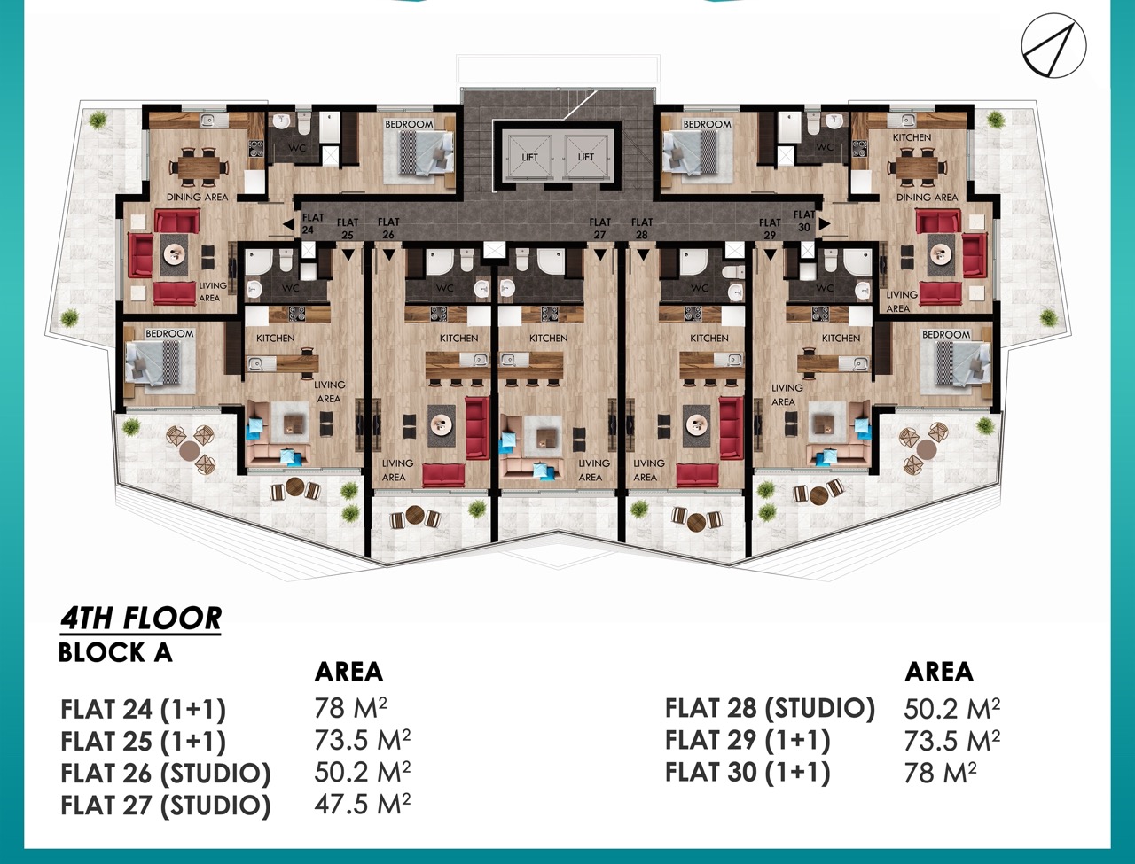 – Тип квартир:0+1, 1+1, 2+1, 3+1 пентхаус