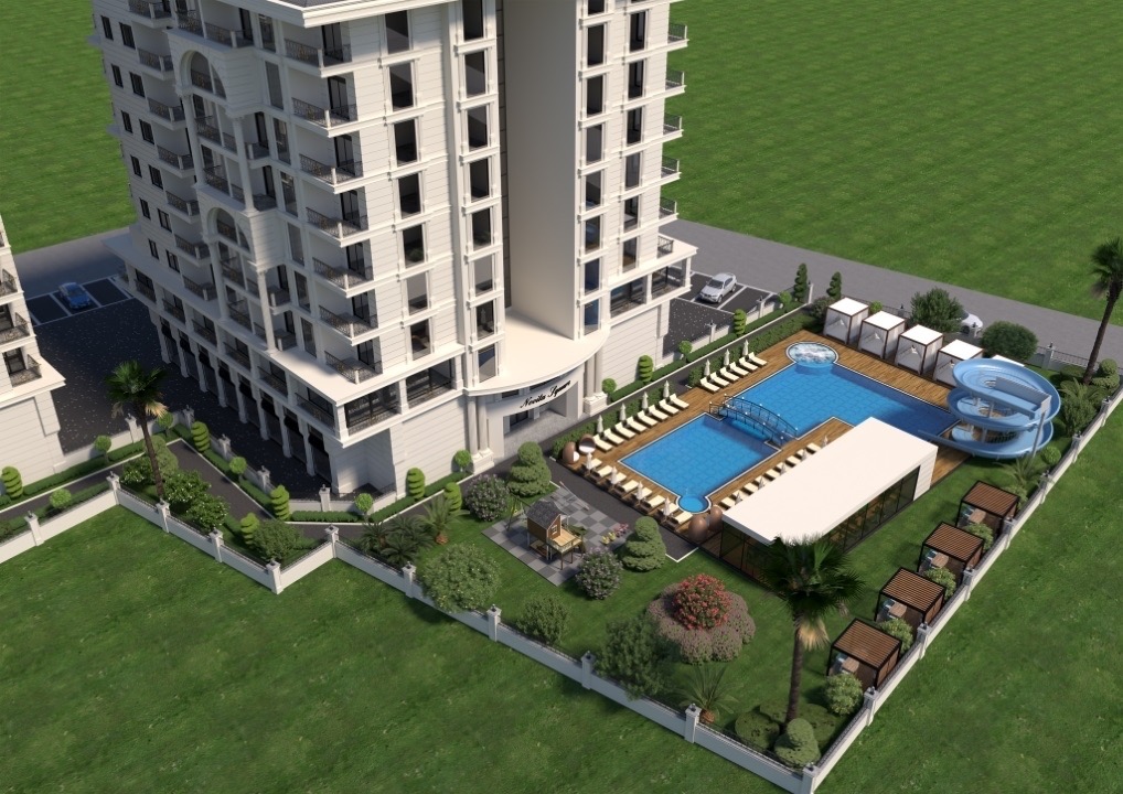 Жилой комплекс в Алании, расположенный в районе Махмутлар, представляет собой современное жилое сооружение, всего в 700 метрах от моря. Комплекс имеет 10 этажей и включает в себя 77 квартир, предлагая разнообразные варианты жилья.