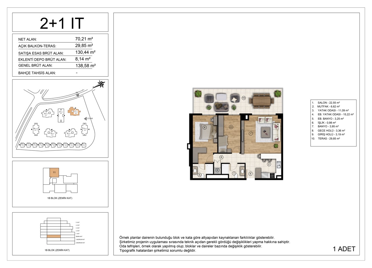 Комплекс с большими террасами или садами в каждой квартире предлагает тихую и оригинальную жизнь недалеко от города. Вблизи расположены объекты, как детский сад, медицинское учреждение, социальное учреждение, мечеть и парковые зоны, образовательные учреждения и магазины, что позволяет жителям жить полноценной жизнью района. Этот новый район, который станет современным жилым пространством будущего, благодаря своему расположению рядом с озером Кючукчекмедже, соседом Бахчешехира, также предлагает привлекательные возможности для инвесторов.