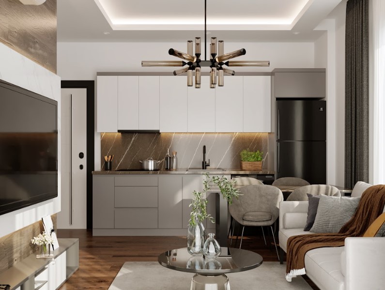 Предложены четыре варианта апартаментов – 1+1, 2+1,3+1 и 4+1 площадью от 48 до 201 м2. В стоимость каждой квартиры входит чистовая отделка, встроенная кухонная мебель, сантехника, межкомнатные двери и все коммуникации.