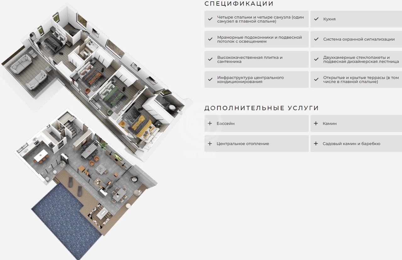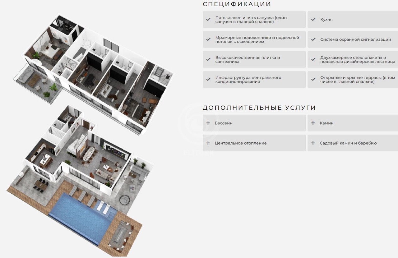 Каждая вилла представляет собой настоящий шедевр архитектуры и дизайна, сочетая в себе современные удобства с элегантным стилем. Дома будут предоставлены полностью готовыми к заселению.